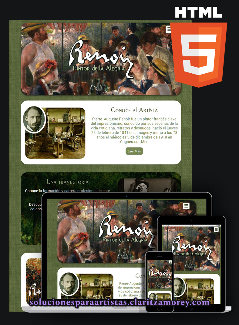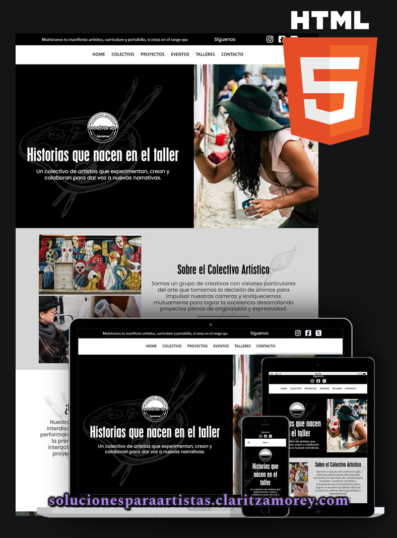 Un sitio HTML rápido, elegante y fácil de mostrar como portafolio que prioriza imagen y velocidad. Incluye dominio .com, hosting ilimitado 1 año y 3 cuentas webmail. Perfecto para artistas que necesitan presencia profesional sin gestión continua.